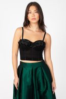 Striking and feminine, the Molly Rosette Bustier features sculpted cups adorned with 3D floral appliqués for a bold romantic touch. Designed with structured boning and adjustable straps, it offers both support and style. Perfect to pair with high-waisted skirts, tailored pants, or layered under a blazer for a chic night-out look.